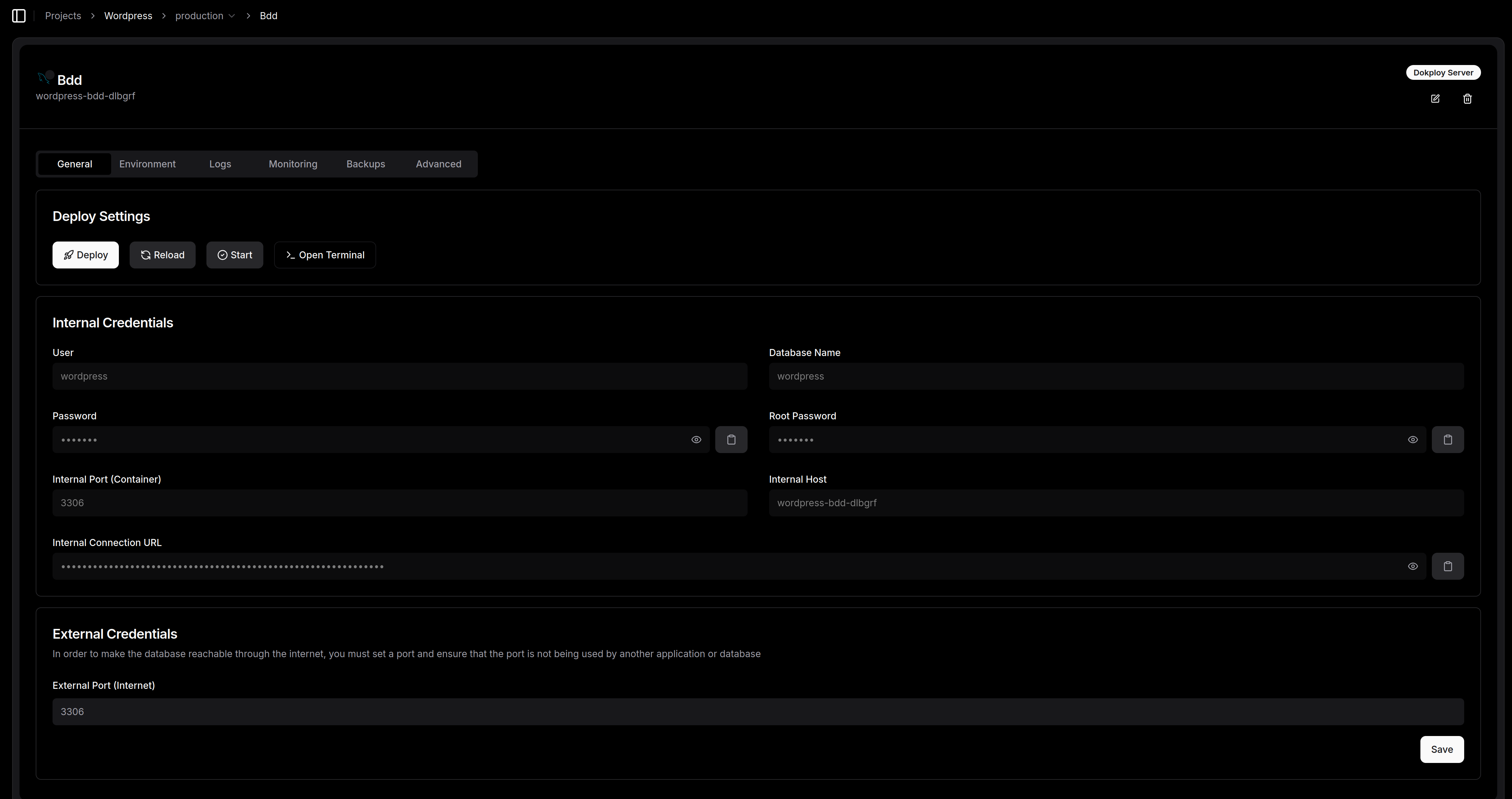 La marche à suivre dans Dokploy :