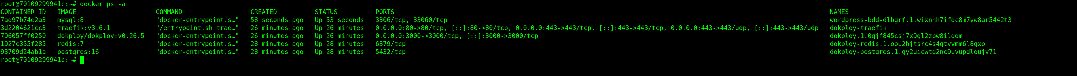 Sous le capot, un petit docker ps -a vous confirmera que tout tourne proprement.