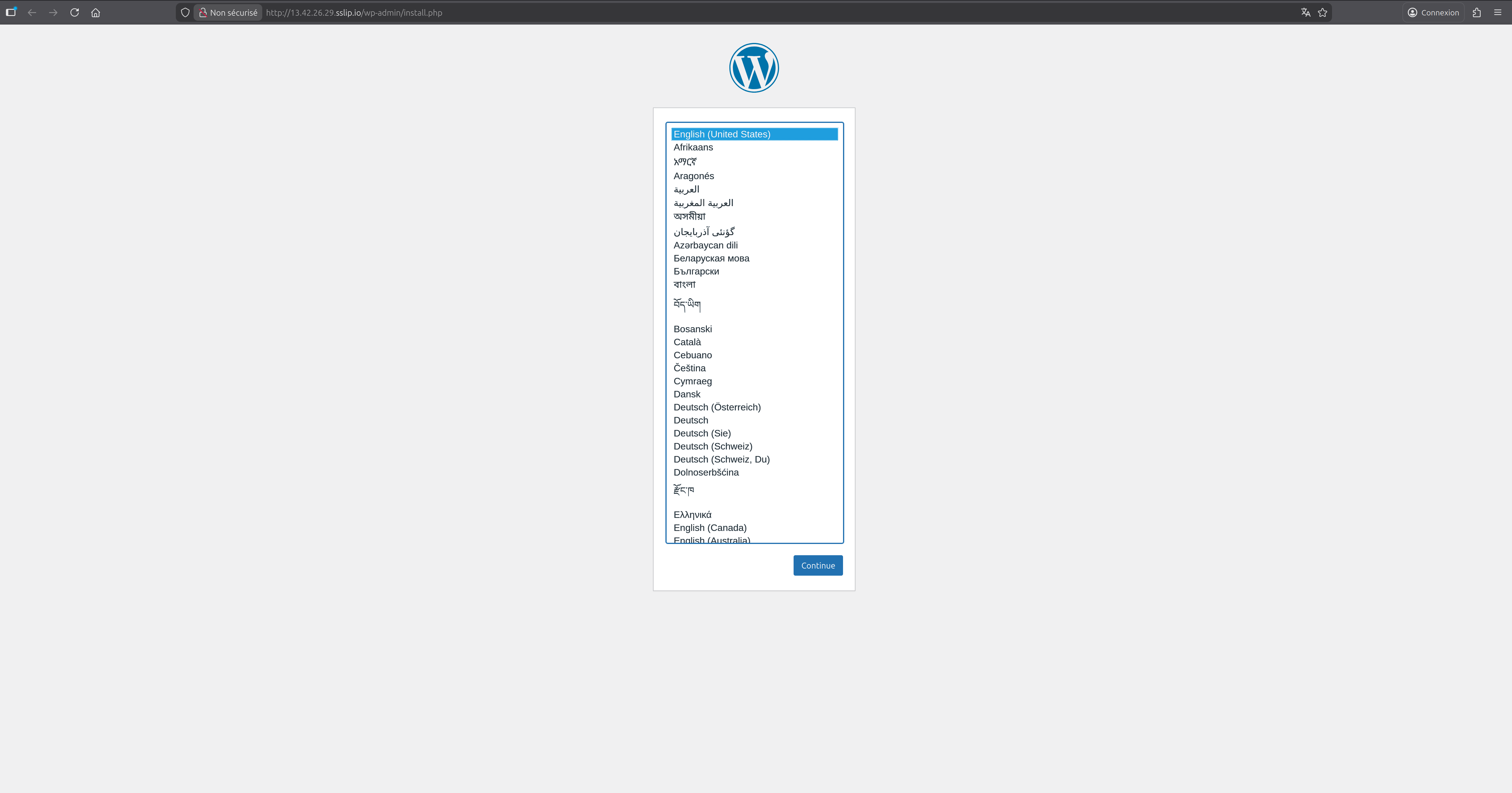 Maintenant testons l'accès à l'interface de Wordpres: